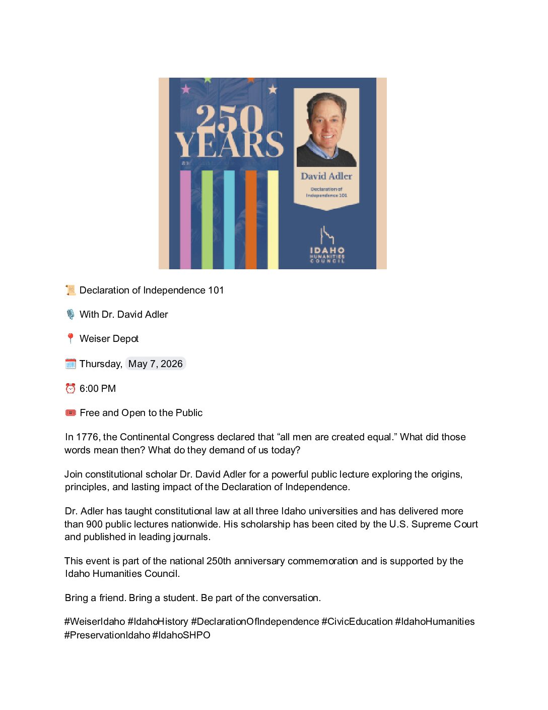In June 1776, the Continental Congress formed a drafting committee to compose a “common sense” explanation, in “terms so plain and firm, as to command assent” for why the American colonies should dissolve all political connection” with Great Britain. Not all of the delegates to the Continental Congress, like the people they represented, wanted to become independent from Great Britain. Thomas Jefferson, the main author, wrote that “all men are created equal” and outlined the foundational principles of a new American nation. What are these foundational principles and what have they meant to Americans and other peoples living under the burden of oppression and ignorance? How has the Declaration of Independence inspired Americans and others to overturn the power of tyrants and to fight for equality?  In this presentation, historical and legal scholar Dr. David Adler will discuss the Declaration of Independence and what it has meant to the United States and to the world.